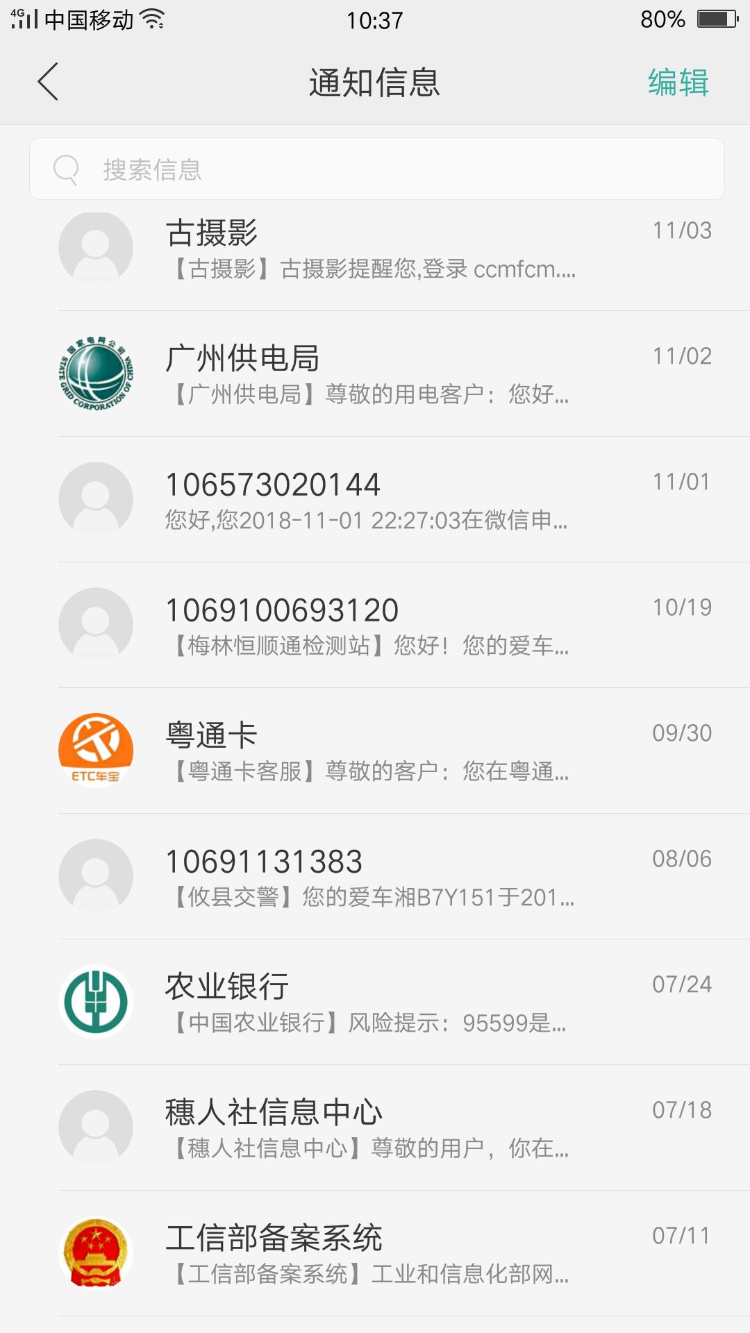 下圖為人們常見的企業單位利用短信平臺發送的短信